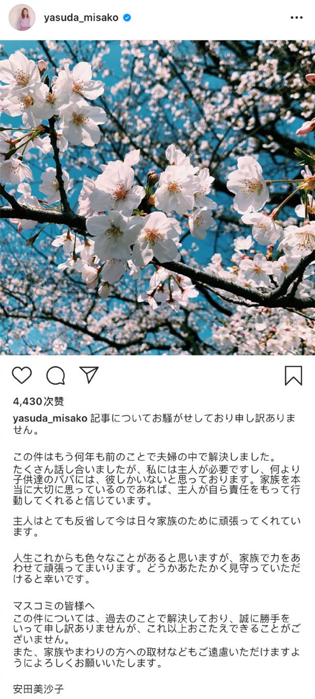 女星老公被曝二度出轨 她大方选择原谅 还为他生下二胎 出轨 安田美沙子